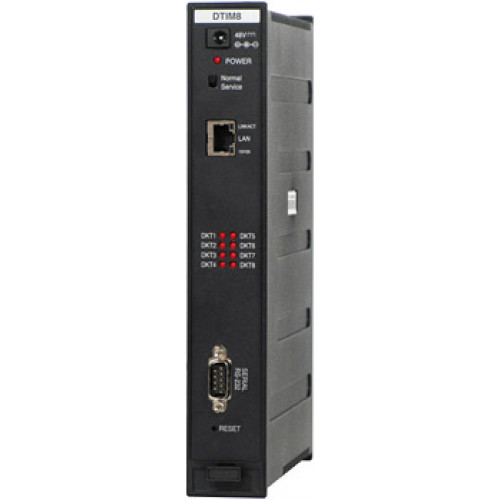 Восьмиканальный модуль интерфейса цифровых терминалов поддерживает до 8 цифровых системных телефонов серий LKD и LDP. Цифровые системные телефоны (DKTU) обладают большими функциональными возможностями и имеют доступ ко всем ресурсам системы iPECS. Пользователи могут активировать их функции нажатием одной кнопки. Модуль DTIM8 содержит процессор для преобразования речи и сигнализации между форматами IP и TDM, а также цифровые сигнальные процессоры (DSP) для транскодирования на каждом канале.